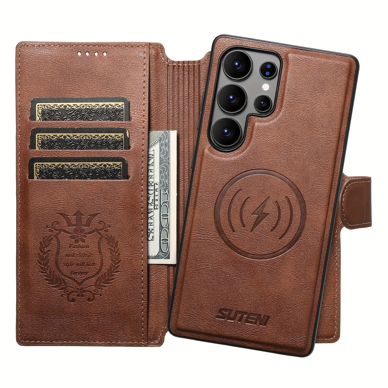The MagPort Wallet Leather Case is a stylish and versatile MagSafe wallet leather case built for Samsung Galaxy users who value function and elegance. Designed with a 2-in-1 detachable magnetic shell, faux leather wallet flap, and wireless charging compatibility, it offers the flexibility of a MagSafe-style experience without sacrificing storage or protection.