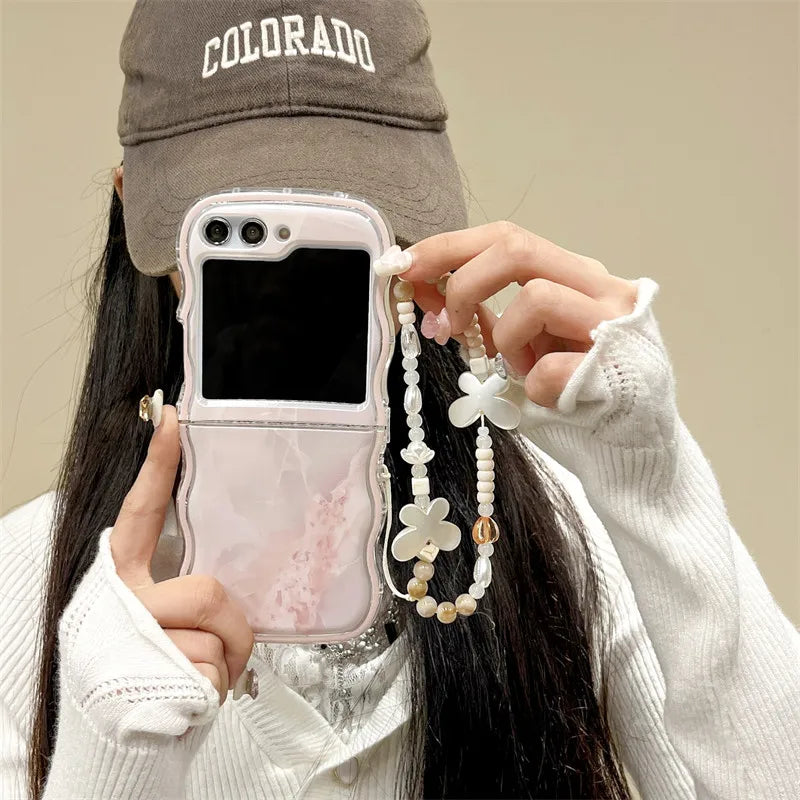 Pink marble phone case for Samsung Galaxy Z Flip 5 with wavy edge